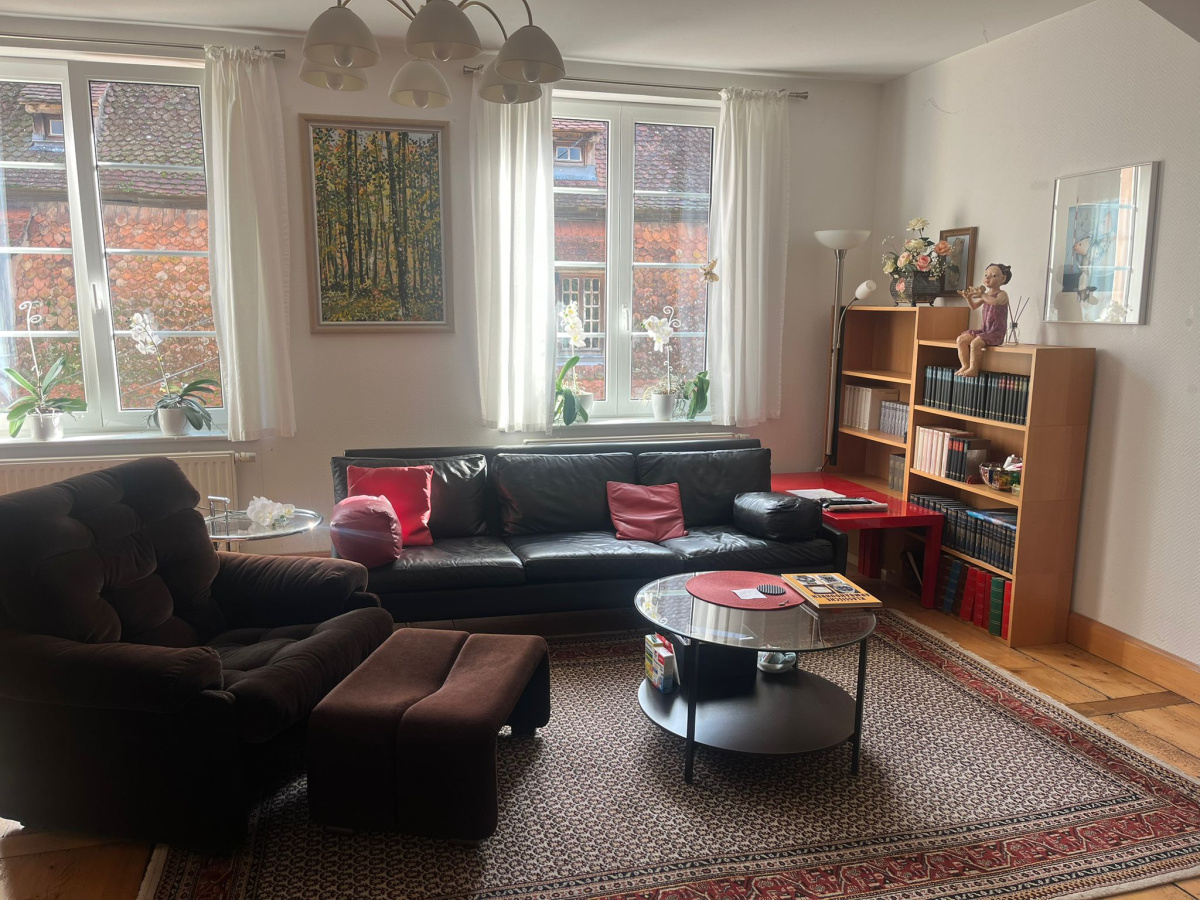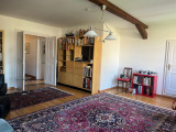 Un vaste séjour baigné de lumière avec une vue direct et imprenable sur l'abbatiale