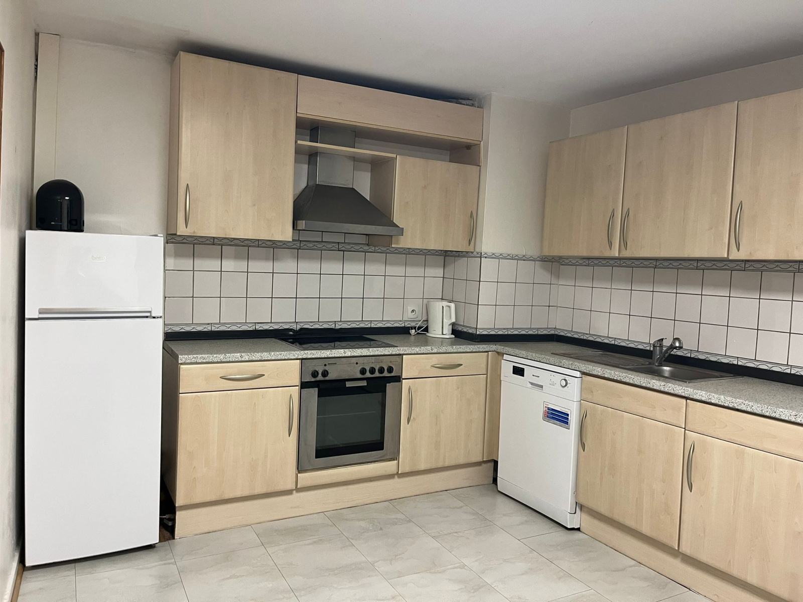 Cet appartement est équipée d'une grande cusine , une salle de douche , deux chambres à coucher ainsi qu'un séjour lumineux.