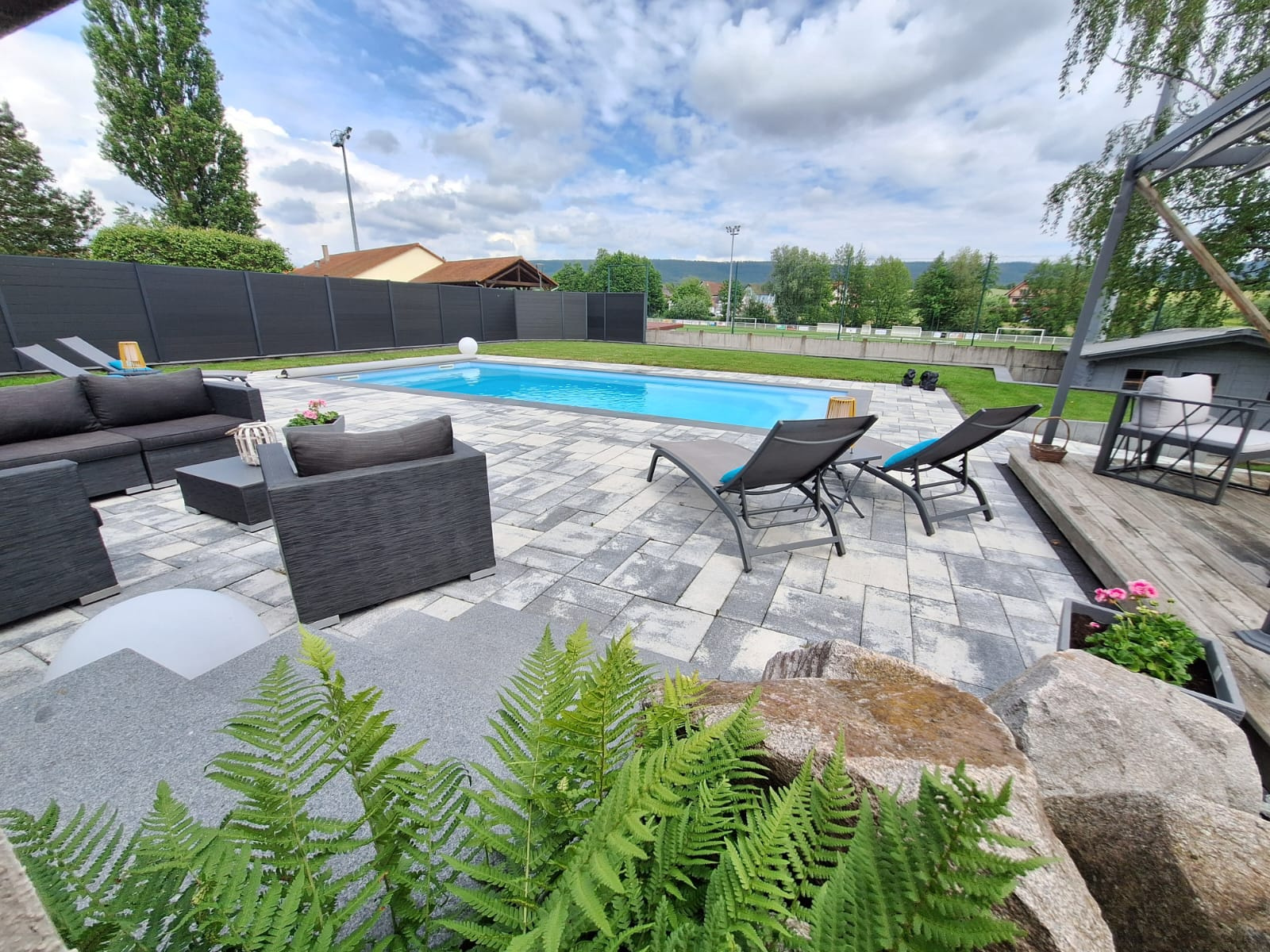 Le jardin et la piscine chauffée de taille agréable, à savoir 9 X 4 m bordée d’une plage aux volumes généreux vous permettront d’écouler d’agréables moments de détente avec vos proches.