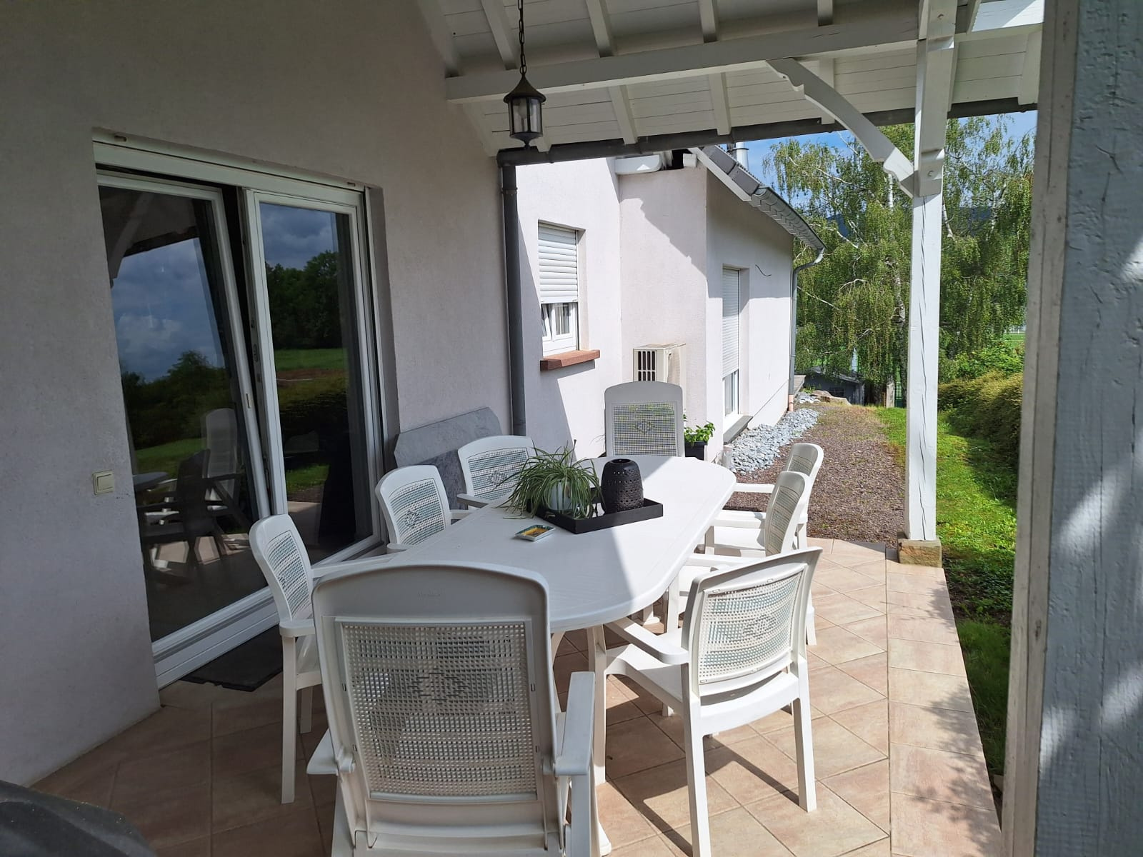 Nichée sur un terrain d’une superficie totale de 1735 m2, cette jolie maison de 165m2 habitables de1975, entièrement rénovée en 2003 offre de belles prestations.