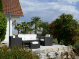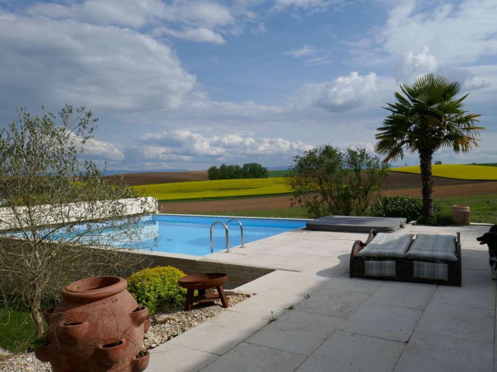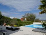 Le terrain de 698 m² est entièrement clôturé, facile d'entretien et situé en pleine nature. Il dispose de deux terrasses avec accès à la piscine et à un jacuzzi extérieur.