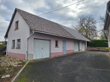 A l’extérieur, une cour, un bâtiment annexe accueillant 3 garages dont l’un avec une fosse et un espace atelier.