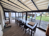 Elle se compose, au rez-de-chaussée, d’une entrée, d’un salon/séjour de 22m2 , une cuisine/ salle à manger qui donne sur une agréable véranda de 20 m2 équipée d’un poêle à pellets pour le chauffage, une buanderie et une salle d’eau avec WC.