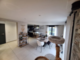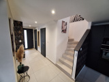 Le rez-de-chaussée est composé d’une entrée, un salon/séjour ouvert sur une cuisine entièrement équipée et un WC séparé. Accès direct au garage double par un espace buanderie/cellier.